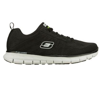 Men's Synergy - Power Switch Athletic Trainers Turn on the juice with the SKECHERS Synergy - Power Switch shoe. Super lightweight engineered mesh fabric and synthetic upper in a lace up athletic training sneaker with stitching accents and Memory Foam insole. Construction: Unique upper construction of engineered knit mesh fabric Upper is extremely lightweight and nearly seamless Engineered open mesh panels at front, sides and heel for breathability Durable stabilizing mesh panels at toe and sides Synthetic lace panel for added durability Lace up athletic training sneaker design Stitching accents Zigzag side stitching detail Side S logo Web fabric heel stripe with top pull on loop Lace up front Padded collar and tongue Soft fabric shoe lining Memory Foam cushioned comfort insole Shock absorbing FlexSole midsole design for comfort and flexibility Highly flexible rubber traction outsole